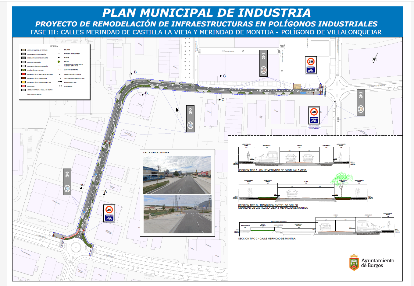 El proyecto consiste en la remodelación de las calles Merindad de Castilla La Vieja y Merindad de Montija, ambas ubicadas en el Polígono Industrial de Villalonquéjar. La solución propuesta es similar para ambas, dado que ambas son calles consecutivas.