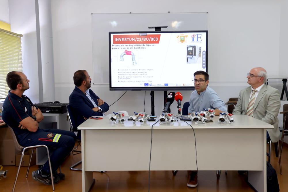 Desde 2022, el Grupo de Investigación de Integridad Estructural (GIE) ha trabajado en el diseño de este dispositivo que pretende dar respuesta a una necesidad real, a la que se enfrentan los bomberos cuando tienen que trabajar en elevadas alturas con mangueras de extinción. Isidoro Iván Cuesta Segura, responsable del GIE, presentó las características del prototipo de conector diseñado y patentado por los investigadores de la UBU, “que surgió cuando detectamos esta necesidad en el cuerpo de bomberos de nuestra ciudad”.