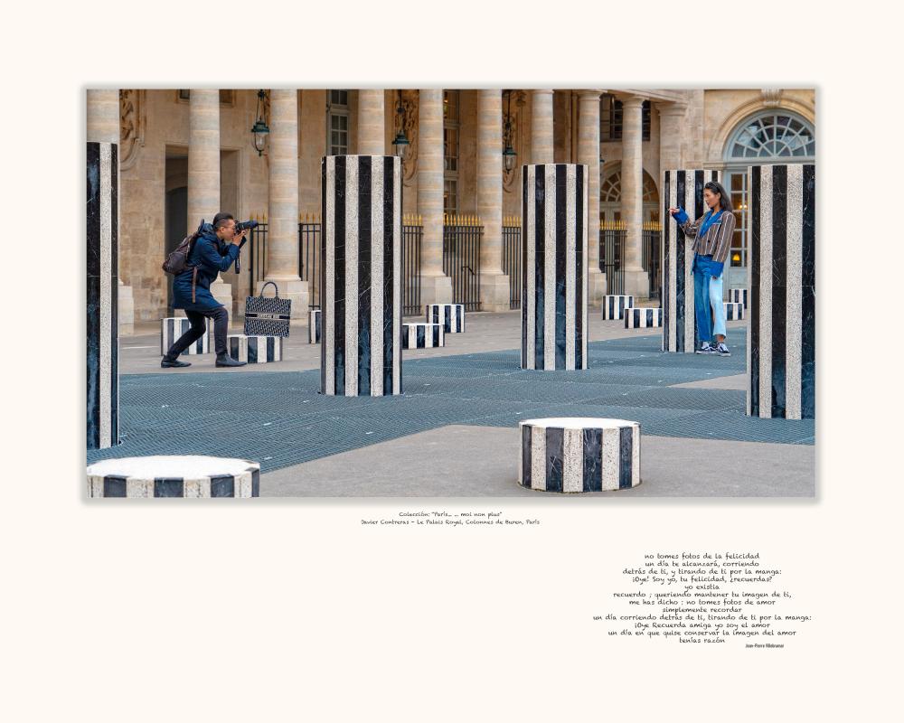 ¿Pero qué milagro es ese al que llamamos París? La hemos pintado, cantado, fotografiado y filmado hasta la extenuación, parece que nos la sabemos de memoria incluso sin haber estado en ella, que no tiene ya nada nuevo que enseñarnos. Pero no. Ahí está, inagotable, capaz de sobreponerse a sí misma y a todos los tópicos, con un pálpito de vida irresistible que Javier Contreras ha sabido captar muy bien, a veces con una mirada de niño curioso que pasea alegre, todo lo señala, todo le gusta y se fija en los besos, en los escaparates, en la gente pintoresca, en los perritos...