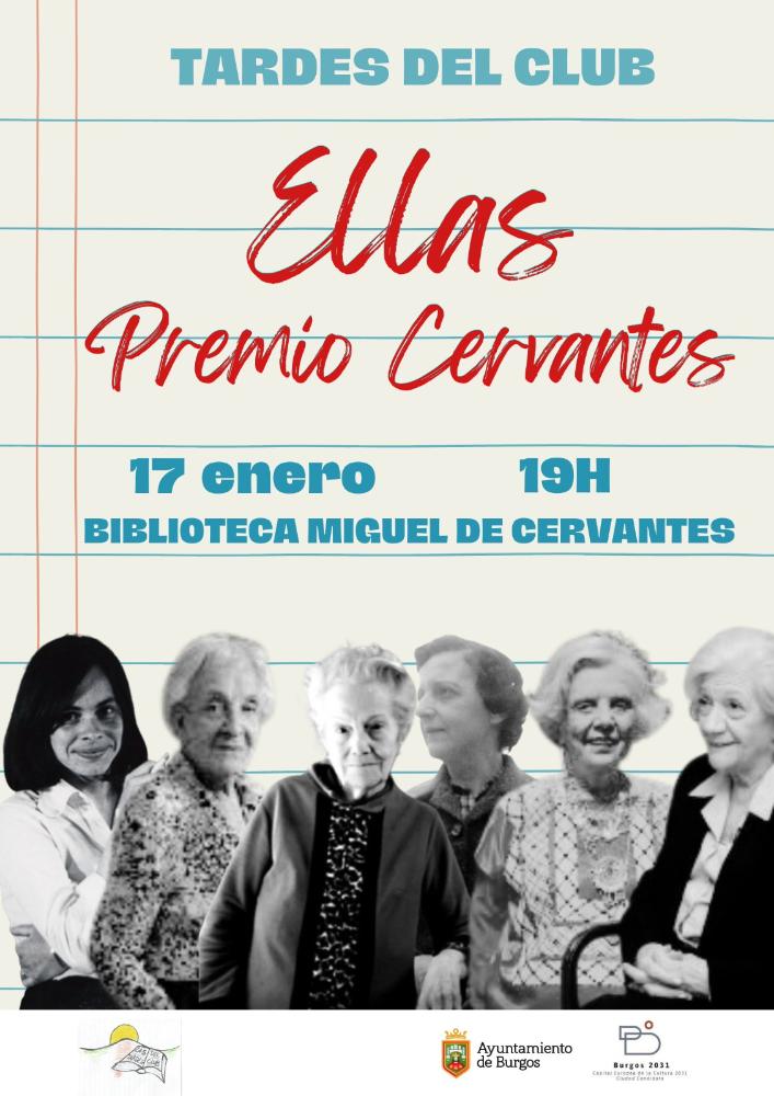El viernes 17 de enero a las 19 H. el colectivo "Las tardes del club" nos ofrece le recital "Ellas, Premio Cervantes" en la Biblioteca «Miguel de Cervantes»