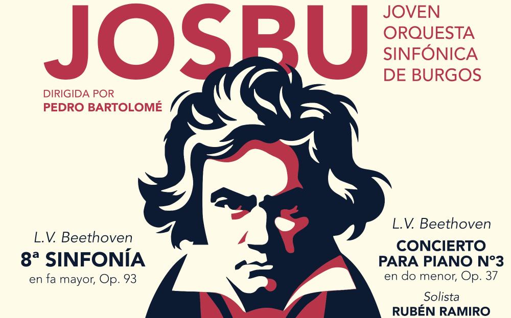 La Joven Orquesta Sinfónica de Burgos (JOSBu), dirigida por Pedro Bartolomé Arce, vuelve al escenario del Teatro Principal de Burgos el domingo 2 de marzo de 2025 a las 19:30 horas para interpretar un programa compuesto por dos magníficas obras de Ludwig van Beethoven: el Concierto para piano n.º 3 en do menor, op. 37, en el que intervendrán Rubén Ramiro como solista de piano, y la Sinfonía n.º 8 en fa mayor, op. 93.