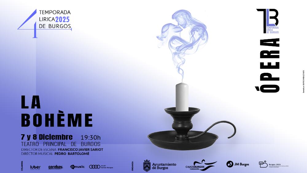 Domingo 7 y lunes 8 de diciembre de 2025. 19:30 h. ÓPERA. “La bohème” (Música: Giacomo Puccini. Libreto: Giuseppe Giacosa y Luigi Illica). Joven Orquesta Sinfónica de Burgos. Coro de la Temporada Lírica de Burgos (director: Juan Gabriel Martínez Martín). Dirección de escena: Francisco Javier Sariot Marquina. Dirección musical: Pedro Bartolomé Arce.