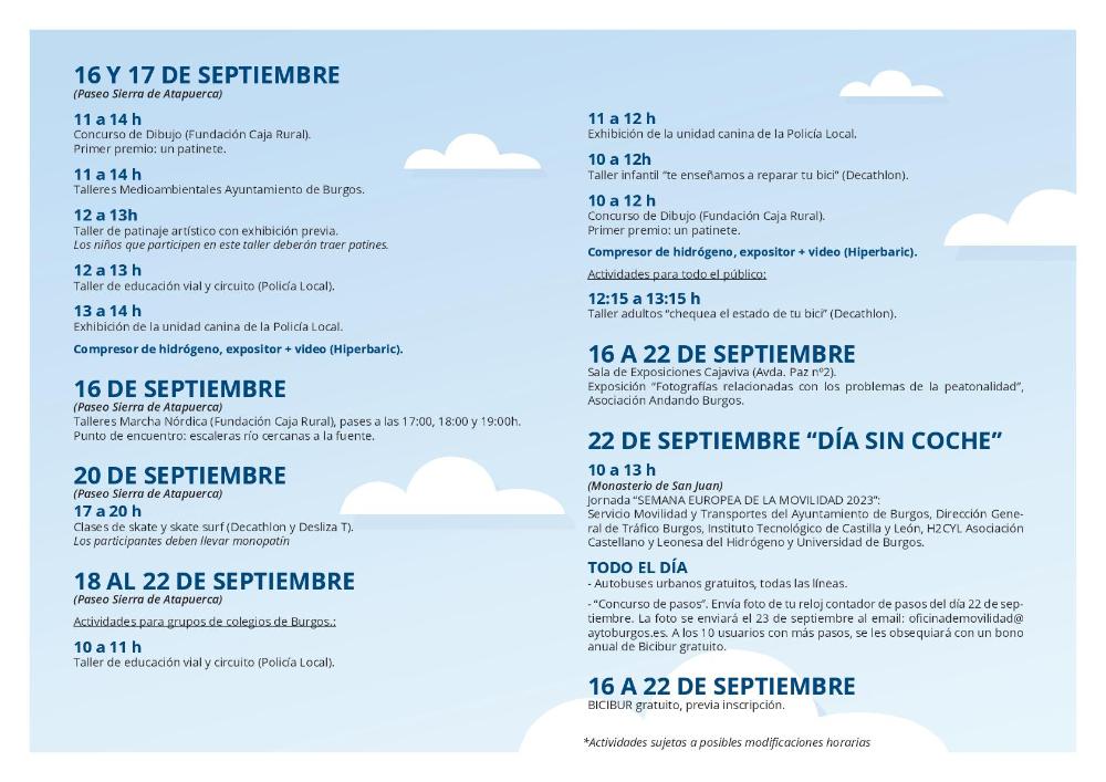 Con la programación de estos días se quiere contribuir a la búsqueda de nuevas soluciones que permitan reducir los problemas derivados del transporte. Gracias a colaboradores como la Policía Local, Decathlon y CajaViva Caja Rural e Hiperbaric se podrá desde «chequear el estado de tu bici», hasta ganar un patinete en el concurso de dibujo.