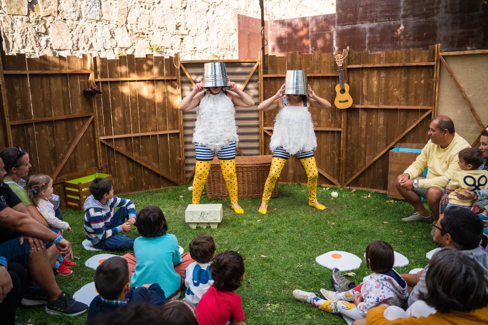 En el corral de la granja de la tía Olivia hay dos gallinas muy peculiares. Se lo pasan bien y nada las perturba. Pero, si llega al lobo, ¿qué hacer? Este corral especial se transforma en un pequeño circo en el que caben las más asombrosas disciplinas circenses, en un verdadero circo para los más pequeños. A través de lenguajes inventados, de la música, los objetos y de la estimulación sensorial, nuestras dos mamás gallinas nos hacen conocer cómo es la vida en este corral tan singular en un espectáculo que no deja indiferente.