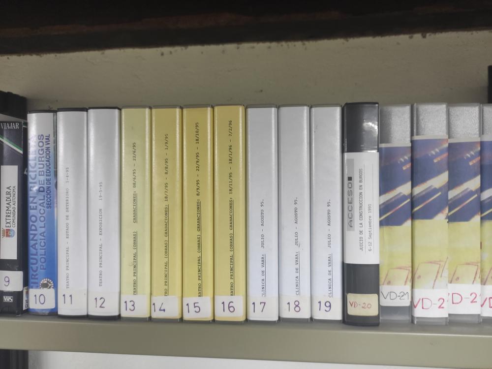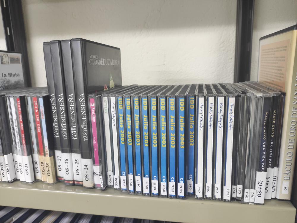 La Colección Audiovisual está integrada por 370 cintas de cassette pertenecientes a plenos del Ayuntamiento, además de unas 30 más de música de grupos burgaleses. También tenemos 58 cintas de video VHS y más de 56 CDs y DVDs que aparecen signaturados con las siglas OS-.