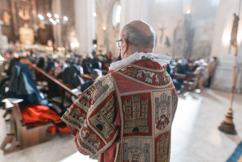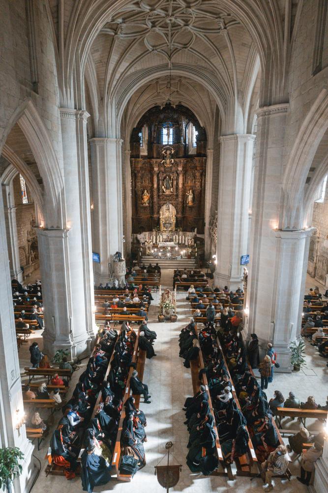 La corporación municipal y las autoridades francesas invitadas recorren juntos el camino entre el Ayuntamiento y la iglesia de San Lesmes, escoltados por guardias vestidos de gala. Les acompañan los Gigantillos, danzantes, dulzaineros y peñas de la ciudad. Una vez allí tiene lugar la ceremonia religiosa, en la que el Alcalde, en representación de todos los burgaleses, ofrece un cirio y panecillos al santo.