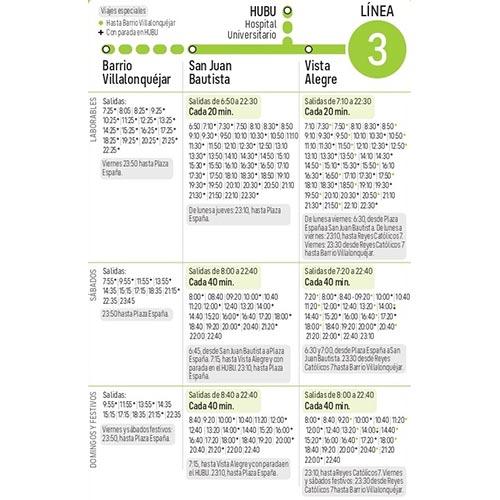 Línea 3: San Juan Bautista - HUBU - Vista Alegre Itinerario Icono Mapa Consulta el Itinerario en Directo Horario Documents LINEA_03.pdf (pdf 44,9 kB)