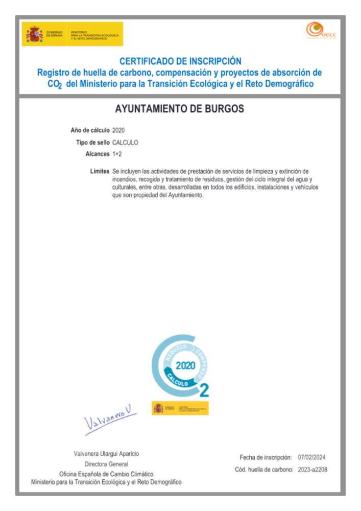 El Ayuntamiento de Burgos ha conseguido el CERTIFICADO DE INSCRIPCIÓN