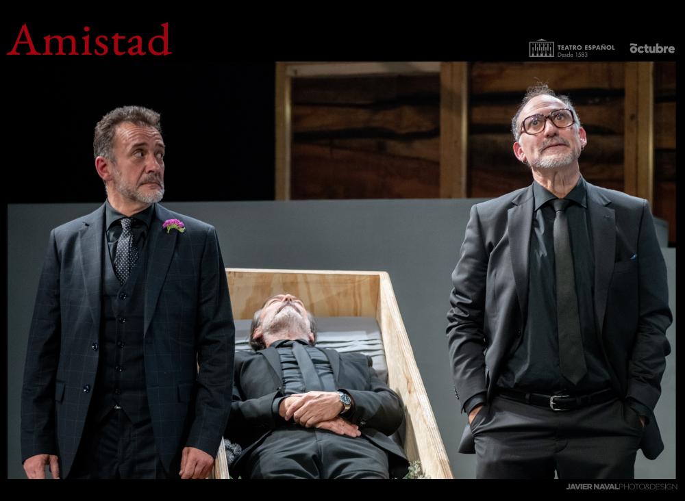 Unos amigos, que lo son desde niños y que han compartido todo tipo de juegos, juegan hoy a uno -quizá sea el último- con el que burlarse de la vida y de la muerte. Se trata de un juego peligroso, porque es la amistad misma lo que ponen en juego... “Amistad” es una reflexión sobre la vida, los recuerdos, la masculinidad, la amistad y el paso del tiempo cargada de humor y pensamiento que ponen en pie tres actores bien conocidos de la escena española: Ginés García Millán, José Luis García-Pérez y Daniel Albaladejo. “Amistad” es una carcajada segura para el espectador, cargada de filosofía.