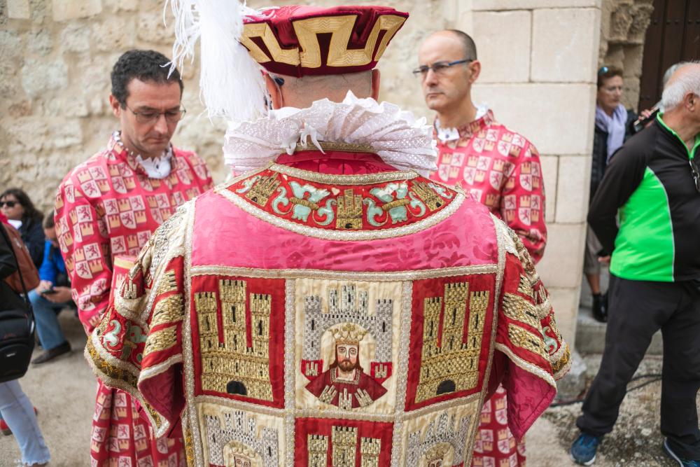 Los Infanzones visten con birrete redondo de seda bordado en dorado, con cuarteles del Escudo de Castilla y León, aljuba de la misma tela con puntillas en la bocamanga, calzón a media pierna de terciopelo rojo, cinto de la misma tela que la aljuba, espada de hoja y arraz en cruz, unida al pomo por gruesos hilos de cáñamo, medias rojas y borceguíes de cuero rojo.