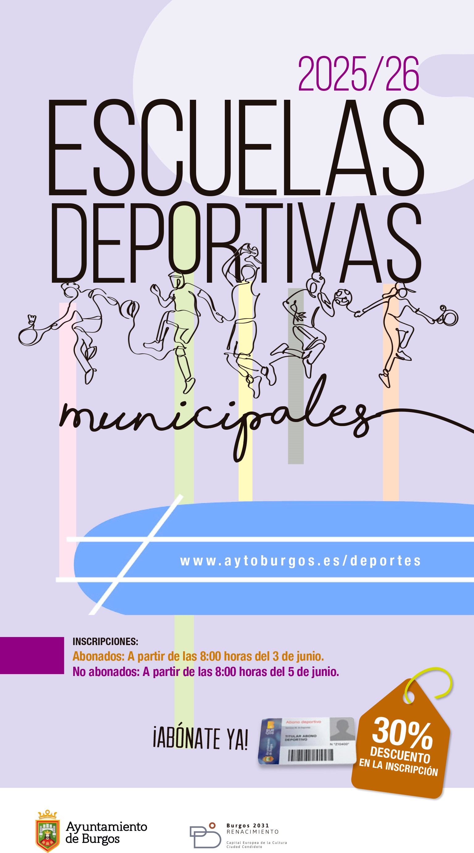 Los ABONADOS podrán realizar la inscripción a través de la Web: https://deportes.aytoburgos.es/deporteson/index.php, APP de Deportes y de forma presencial.