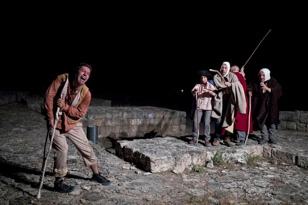 “ Camino” es una comedia de Bambalúa Teatro sobre el Camino de Santiago a su paso por la ciudad. Una farsa cómica que tiene como principal objetivo divertir al espectador; pero, también, contextualizar el Camino de Santiago a su paso por Burgos y ponerlo en valor como símbolo de identidad burgalesa. Es un ramillete de picardías, supervivencias y engaños al servicio de un juego dramático, con la farsa y el humor como clave dramática. Un espectáculo por el que desfilan diferentes peregrinos: un tullido de mala sombra, un monje octogenario, un peregrino doncel, un buhonero sin escrúpulos, cuatro romeros ciegos perdidos en un bucle y la muerte, funesta y caprichosa, que quiere llevarse a uno de ellos...; mas, ¿a quién?