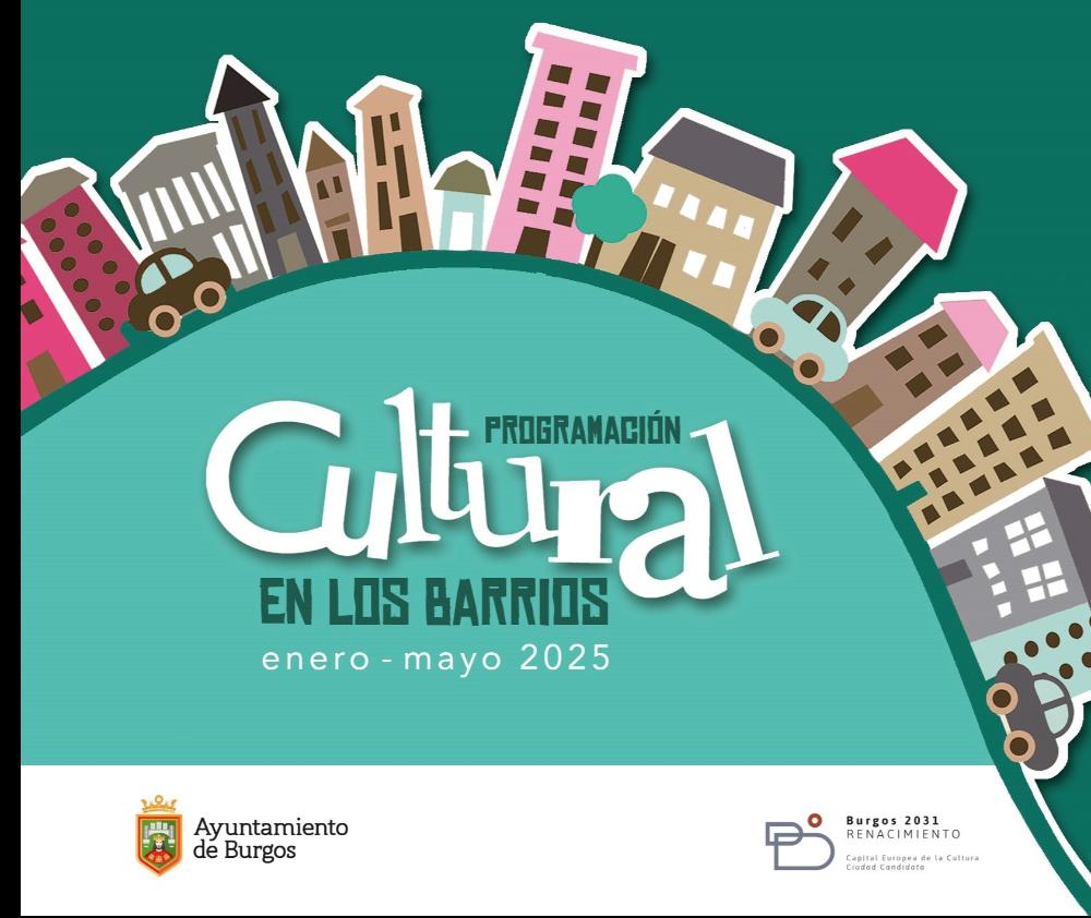 La nueva edición de la Programación Cultural en los Barrios de Burgos se desarrollará del 11 de enero hasta el 10 de mayo de 2025. Con actuaciones para público adulto, infantil y familiar, en los espacios más cercanos al ciudadano, como es su barrio.