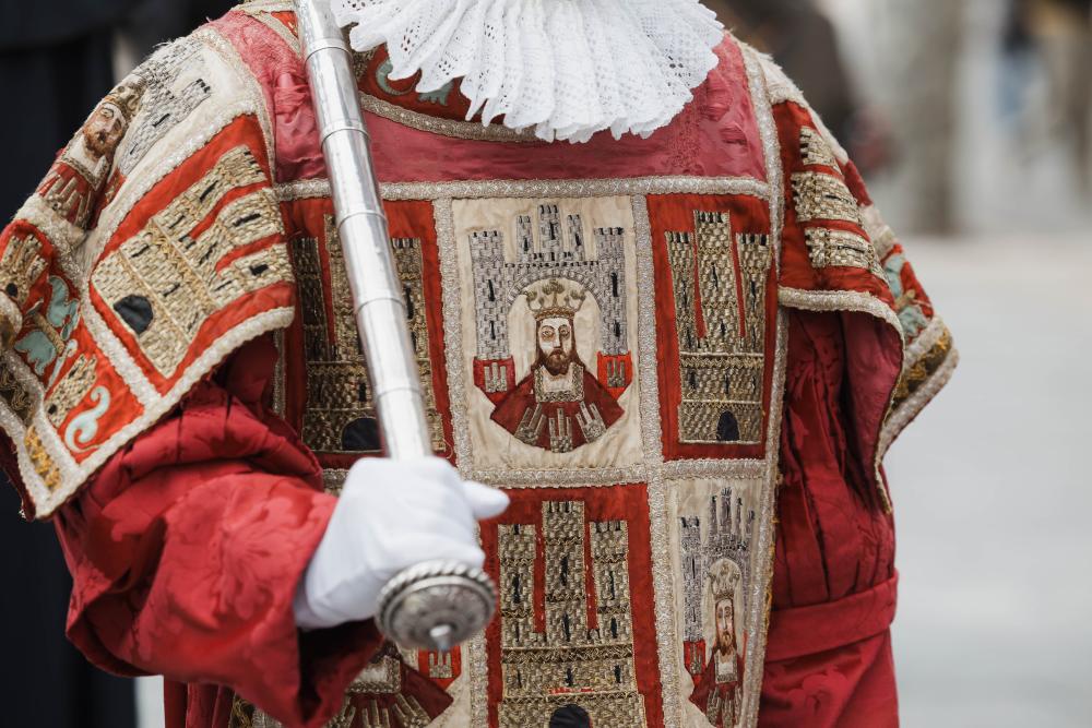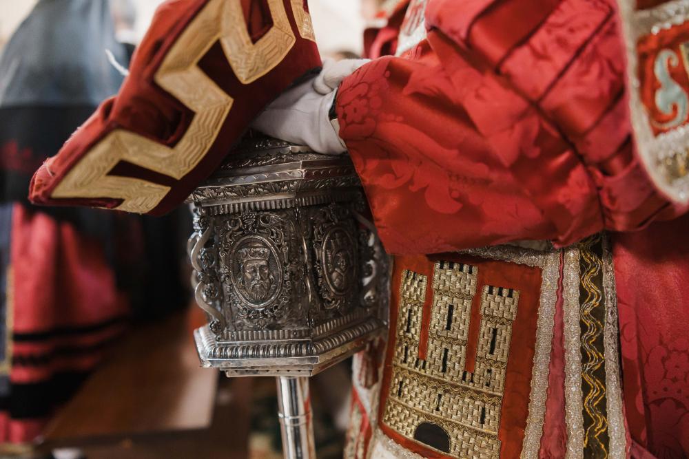 La corporación municipal y las autoridades francesas invitadas recorren juntos el camino entre el Ayuntamiento y la iglesia de San Lesmes, escoltados por guardias vestidos de gala. Les acompañan los Gigantillos, danzantes, dulzaineros y peñas de la ciudad. Una vez allí tiene lugar la ceremonia religiosa, en la que el Alcalde, en representación de todos los burgaleses, ofrece un cirio y panecillos al santo.