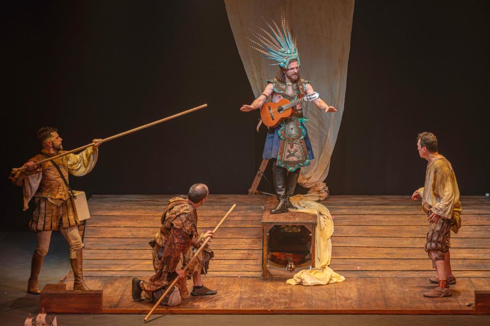 Sábado 28. 20:30 h. CELEBRACIONES DEL DÍA MUNDIAL DEL TEATRO. TEATRO MUSICAL. Ron Lalá: “La Desconquista”. Duración aproximada: 1 h. 20 min. (R). “La Desconquista” es una “road movie” cómica y musical, una fiesta burlesca basada en las crónicas del Nuevo Mundo. Ron Lalá presenta la parodia definitiva del Descubrimiento al más puro estilo de la compañía: teatro en verso clásico al estilo del Siglo de Oro, con música en directo, ritmo desenfrenado y, sobre todo, muchas carcajadas. Una sucesión de escenas, entremeses y canciones que giran en torno a las ambiciones, obsesiones, miedos y angustias del Imperio donde no se ponía el sol, en su afán invasor y en su pasmo ante la nueva realidad descubierta en un continente aún desconocido. Una visión mordaz, delirante y ácida con textos y música originales, humor vertiginoso, poesía escénica y un quinteto de comediantes inimitables. Más información: https://ronlala.com/portfolio/ladesconquista/