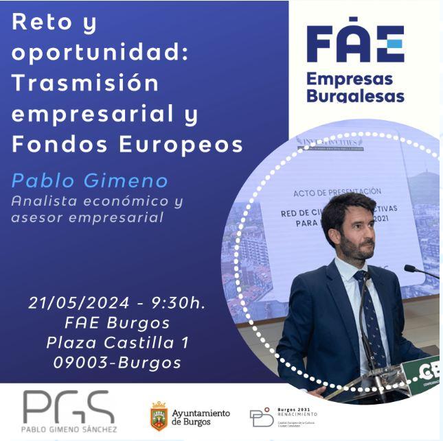 Desde FAE Burgos y su Oficina de Transferencia de Negocios, en colaboración con el Ayuntamiento de Burgos, se organiza la Jornada «Reto y oportunidad: transmisión empresarial y Fondos Europeos»