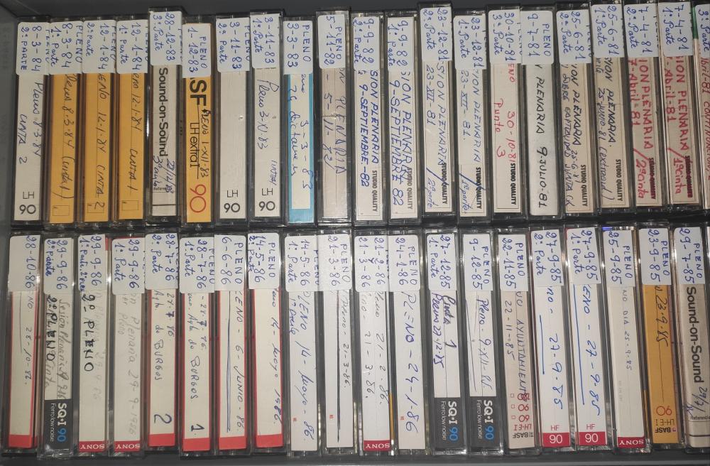 La Colección Audiovisual está integrada por 370 cintas de cassette pertenecientes a plenos del Ayuntamiento, además de unas 30 más de música de grupos burgaleses. También tenemos 58 cintas de video VHS y más de 56 CDs y DVDs que aparecen signaturados con las siglas OS-.