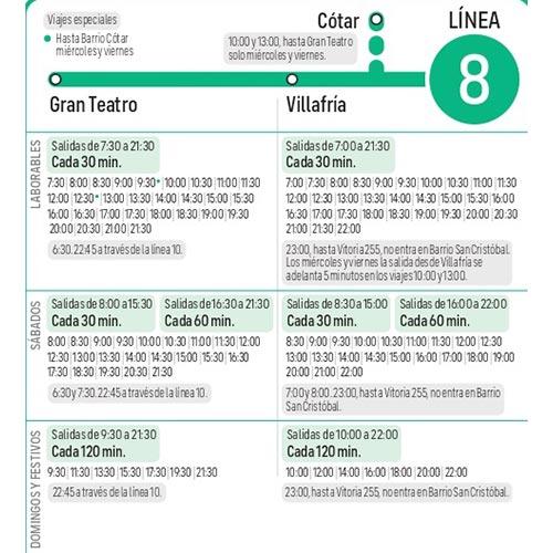 Línea 8: Gran Teatro - Villafría Itinerario Icono Mapa Consulta el Itinerario en Directo Horario Documents LINEA_08.pdf (pdf 33,4 kB)
